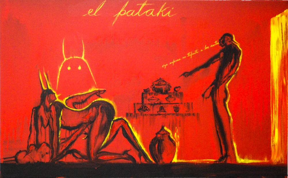 Clarita begins at the beginning, with a chaotic and promiscuous world. Her first exhibition is a seed, a small chaos looking for balance between primitive and western painting, between symbols and artistic values, between white and black in Cuban culture.