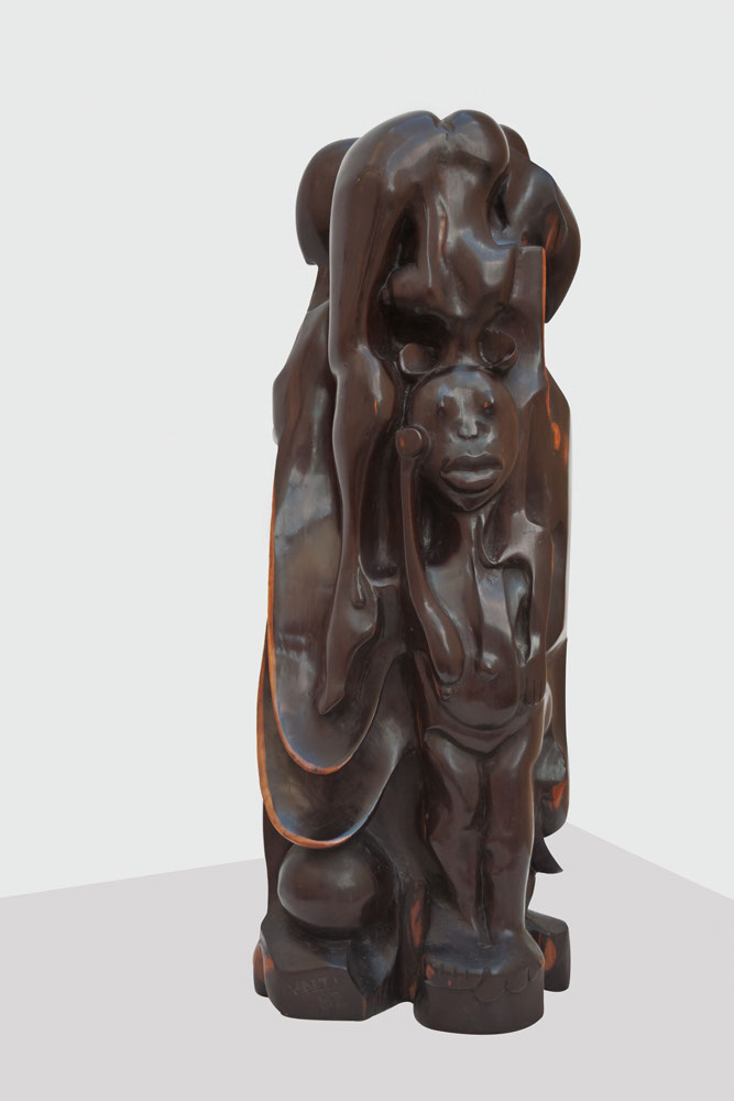Still, we need to recognize the difficult conditions in which this artist insists on his choice to cre- ate worthy and profoundly Cuban art, the presence of which trans- forms the dead word into the lan- guage of the future. Not to do it would be a real injustice. In the entryway of his house, an architectural pretext for the flickering twilight, he has his workshop, and in a small yard, a brief place of respite, is a pile of exposed logs, more than one of which has been lost. His tools, worn by much use, show no sign of the technical advances in this art... Other Cuban sculptors with very modern intentions explore what there is of Africa in Cuba. They facilitate the appearance of a newly enriching perspective on a universal phenomenon that comes from our roots. This is how we discover, with the marveled gaze of the European, something that is part of us and which surrounds us from the time we are born, first in images and then in words. Ramón Haití sifts through the dust of numerous peoples, listening to the voice that swells and entwines in the blood, without masks to wear during the festivals.