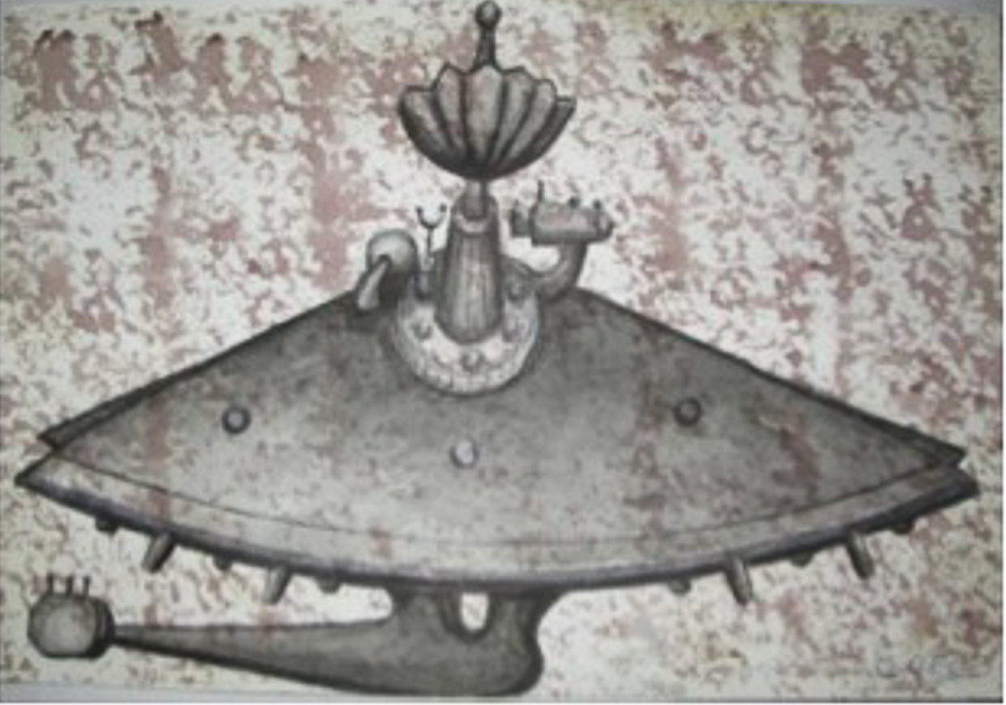 La escultura de Cobas, maderas ensambladas con piezas metálicas de extracción fabril –tornillos, pistones, ruedecillas. . .- sobrepasan su primaria significación mito – religiosa y la inherente connotación erótica de sus formas, para entregarse como maquinarias carentes de función pero portadoras de un aviso sin caducidad: la indisoluble conexión de la criatura humana con la naturaleza y con la de su propio cuerpo en la entrada a la era de la robótica y la digitalización.