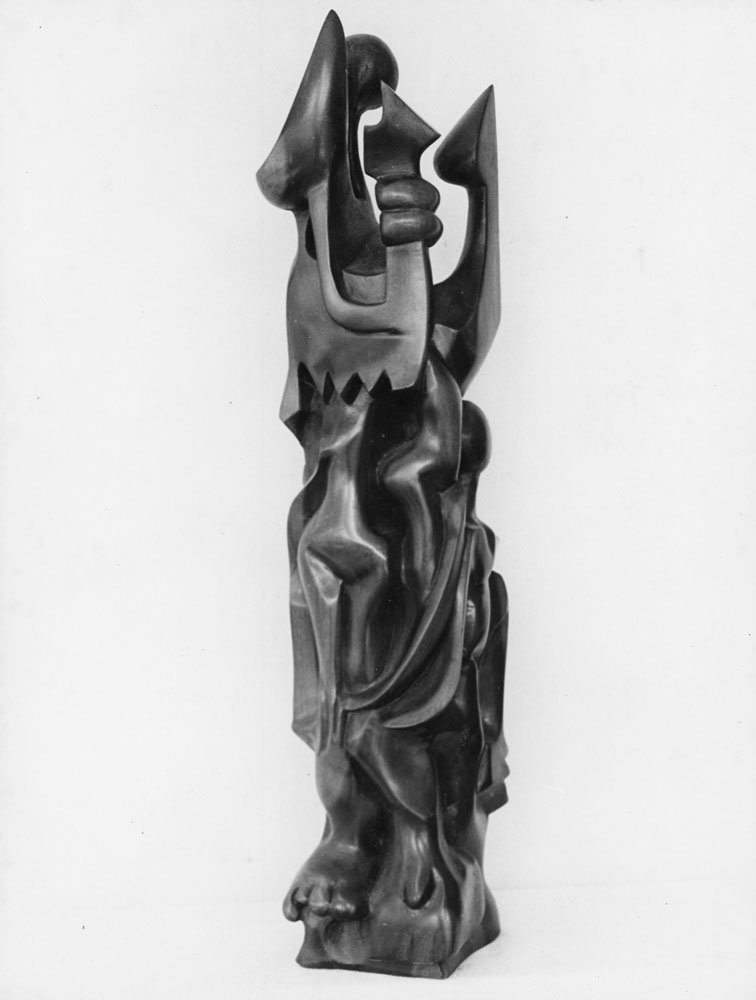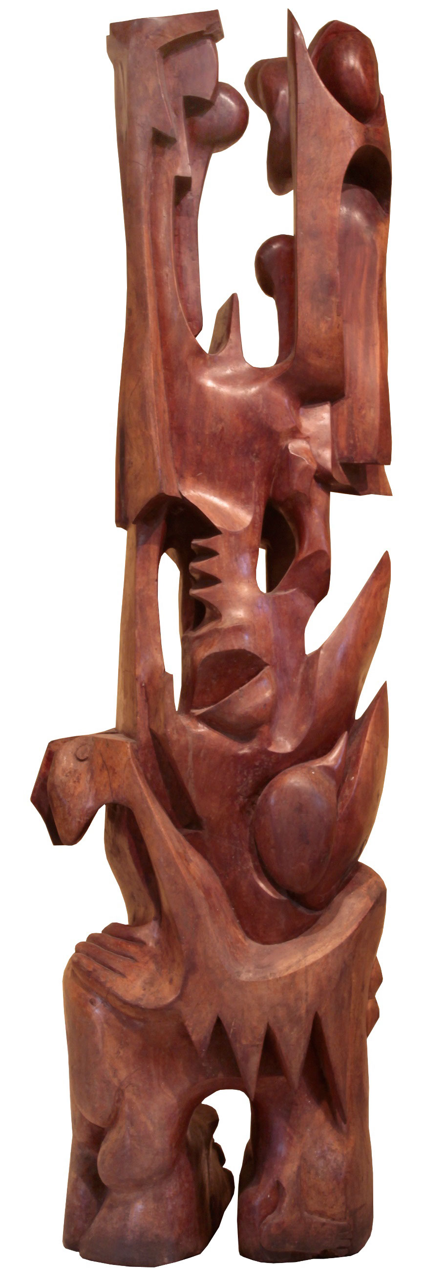 Still, we need to recognize the difficult conditions in which this artist insists on his choice to cre- ate worthy and profoundly Cuban art, the presence of which trans- forms the dead word into the lan- guage of the future. Not to do it would be a real injustice. In the entryway of his house, an architectural pretext for the flickering twilight, he has his workshop, and in a small yard, a brief place of respite, is a pile of exposed logs, more than one of which has been lost. His tools, worn by much use, show no sign of the technical advances in this art... Other Cuban sculptors with very modern intentions explore what there is of Africa in Cuba. They facilitate the appearance of a newly enriching perspective on a universal phenomenon that comes from our roots. This is how we discover, with the marveled gaze of the European, something that is part of us and which surrounds us from the time we are born, first in images and then in words. Ramón Haití sifts through the dust of numerous peoples, listening to the voice that swells and entwines in the blood, without masks to wear during the festivals.