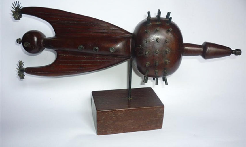 Cobas’s sculptures, wood assemblages with manufactured metallic pieces such as screws, pistons, and little wheels... go beyond their first mythical-religious meaning and the inherently erotic connotation of their shapes. They become machines without function but which convey a timeless warning: the indissoluble connection between human beings and nature and with their own bodies on the threshold of the era of robotics and digitization.