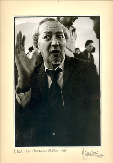 In the protocol house there was a more casual atmosphere, excitement over getting together with the “living icon.” On some of the visits the photographer Ramón Martínez Grandal, who was at the time a photographer for the magazine Revolución y Cultura, was there with his cameras, along with Mario Díaz Leyva, a photographer at the Ministry of Culture. Both of them did portraits of sessions with Lam standing or in his wheelchair, holding forth with soliloquies about the past.