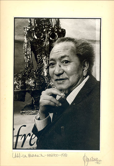 “A Painter of Magical Realism” was the title of a one-person show by Manuel Mendive in Galería L in November 1980, which Lam visited. At such times he moved about in a wheelchair, always accompanied by specialists of the Minister of Culture. In the visitor’s book the master wrote comments praising the work on display and signed his name. Mendive keeps the book with deep affection.