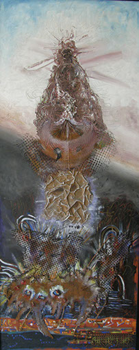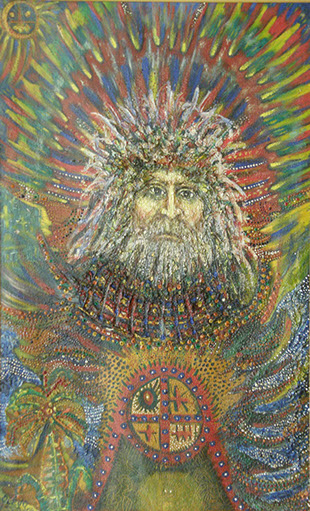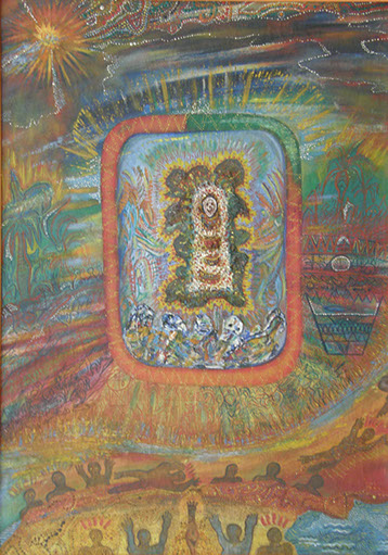 The painting of self-taught artist Miguel de Jesús Ocejo (Santiago de Cuba, 1940-Havana, 2006) reflects the particular social and cultural environment he was born into and where he took his first steps. In his paintings we see the panorama of the popular religions of eastern Cuba, characterized by elements of the cults of the first inhabitants of our is- land, visual references derived from Franco- Haitian ceremonies, and by multiple visual elements of spiritism.