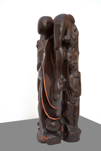 Still, we need to recognize the difficult conditions in which this artist insists on his choice to cre- ate worthy and profoundly Cuban art, the presence of which trans- forms the dead word into the lan- guage of the future. Not to do it would be a real injustice. In the entryway of his house, an architectural pretext for the flickering twilight, he has his workshop, and in a small yard, a brief place of respite, is a pile of exposed logs, more than one of which has been lost. His tools, worn by much use, show no sign of the technical advances in this art... Other Cuban sculptors with very modern intentions explore what there is of Africa in Cuba. They facilitate the appearance of a newly enriching perspective on a universal phenomenon that comes from our roots. This is how we discover, with the marveled gaze of the European, something that is part of us and which surrounds us from the time we are born, first in images and then in words. Ramón Haití sifts through the dust of numerous peoples, listening to the voice that swells and entwines in the blood, without masks to wear during the festivals.