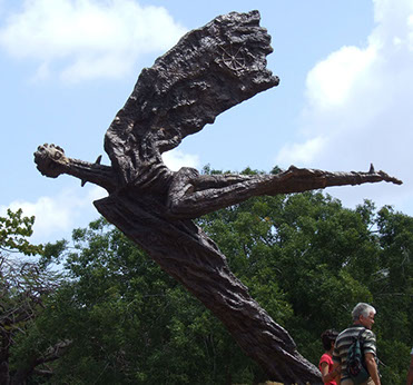 In Alberto Lescay’s drawings on cardboard from the late 1970s one could perceive an approach similar to Tachisme, with a calligraphic style of drawing from which suggestions of representational allusions emerged, arranged as a formal thematic element to which denser material and chromatic richness were gradually introduced. In monumental commemorative sculpture, Lescay takes up the image of the distinguished participants in the struggle for independence, in a sculptural style marked by the figure of the hero, as interpreted by the epic of the Revolution.