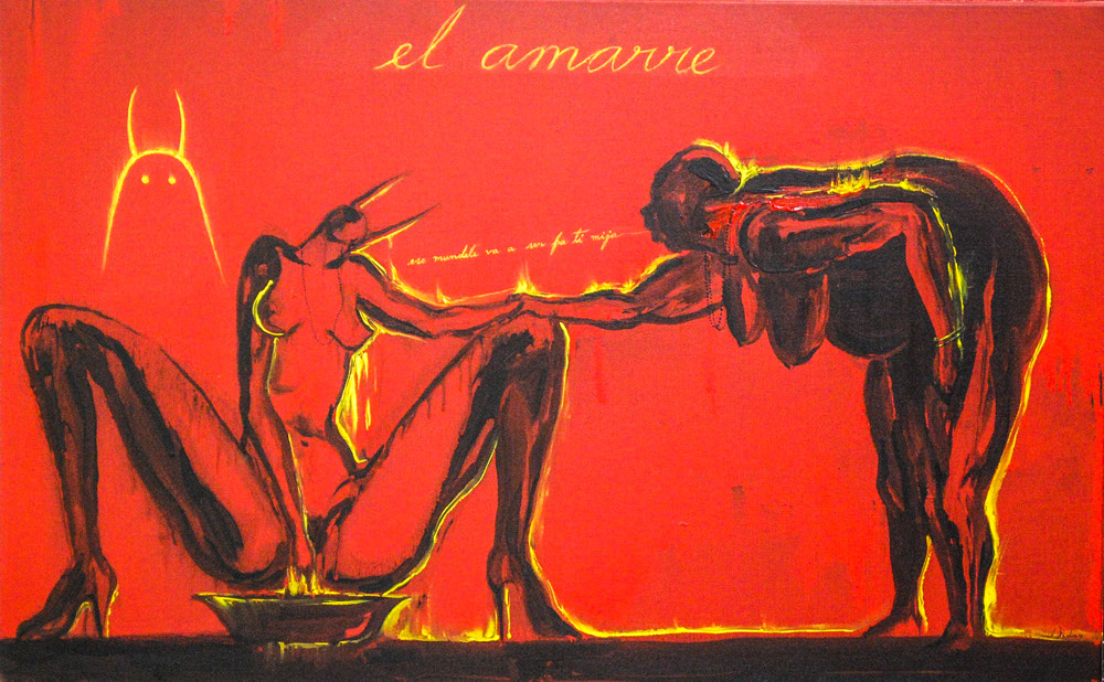 Clarita begins at the beginning, with a chaotic and promiscuous world. Her first exhibition is a seed, a small chaos looking for balance between primitive and western painting, between symbols and artistic values, between white and black in Cuban culture.