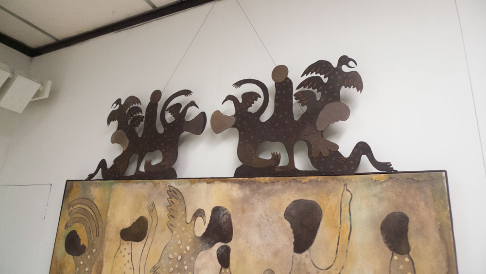He began his work in the Cultural Workshop with exhibitions of drawing, painting, and sculptural assemblages. At the same time he directed the activities of the Workshop, organizing cultural meetings and interactions among visual artists from various provinces of the country. In these events the artists produced sculptures, ceramics, assemblages, and paintings that were later exhibited in the Cultural Workshop galleries.