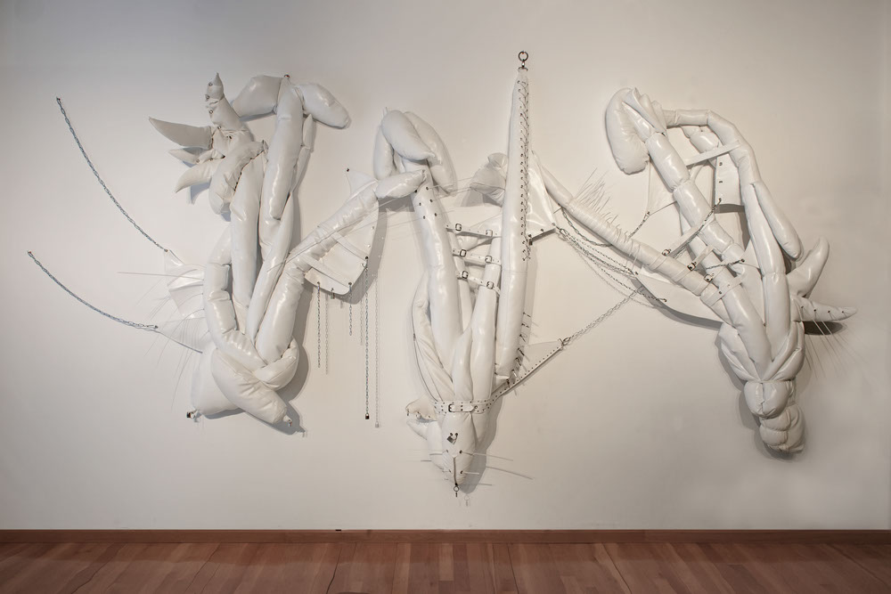 serie Selva en las Paredes, installation, soft sculpture (leather, chains, padlocks) / instalación escultura blanda (piel, cadenas, candados), 250 x 500 x 20 cm, 2012