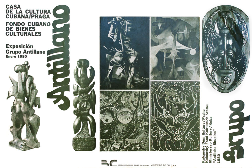 activity as old as it is beautiful. As a designer he shaped the graphic look of the posters for Grupo Antillano’s exhibitions. We should recall, for example, the outstanding poster he did for the April 1979 exhibition in tribute to Don Fernando Ortiz, in the National Library, or the catalogue for the January 1980 exhibition of the Grupo Antillano in the House of Cuban Culture in Prague.