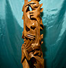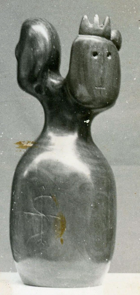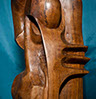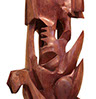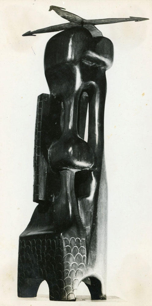 Still, we need to recognize the difficult conditions in which this artist insists on his choice to cre- ate worthy and profoundly Cuban art, the presence of which trans- forms the dead word into the lan- guage of the future. Not to do it would be a real injustice. In the entryway of his house, an architectural pretext for the flickering twilight, he has his workshop, and in a small yard, a brief place of respite, is a pile of exposed logs, more than one of which has been lost. His tools, worn by much use, show no sign of the technical advances in this art... Other Cuban sculptors with very modern intentions explore what there is of Africa in Cuba. They facilitate the appearance of a newly enriching perspective on a universal phenomenon that comes from our roots. This is how we discover, with the marveled gaze of the European, something that is part of us and which surrounds us from the time we are born, first in images and then in words. Ramón Haití sifts through the dust of numerous peoples, listening to the voice that swells and entwines in the blood, without masks to wear during the festivals.