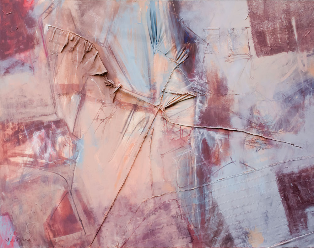 ...la pintura de Julia Valdés se ha convertido en un universo pleno de insinuaciones. La sugerente naturaleza de su obra emerge de la confrontación entre nuevos gestos, materialidad ascendente y tensión dramática, elementos que han definido la paulatina transfiguración de su discurso abstracto. El dibujo profuso que por mucho tiempo caracterizó su proceder, unas veces convertido en hilo conductor de la escena y otras cual identidad caligráfica con rango semejante al resto de las acciones pictóricas, ha cedido paso a otro modo de componer el corpus de la representación.