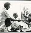 From the beginning of his time in the hospital, accompanied by his secretary Adelita Gallo, Lam began to receive visits from artists, intellectuals, and musicians connected to the Cuban cultural scene. Maestro Odilio Urfé, a musician who was director of the Popular Music Seminar, organized some of those meetings with close friends and scholars, such as Rogelio Martínez Furé and the opera singer Yolanda Hernández. Others, such as Rafael Queneditt, met Lam through common acquaintances such as the painter Manuel Couceiro. Queneditt explained to Lam what activities the Grupo Antillano had in mind and the master became interested in the Grupo and expressed his desire to meet the other members.