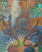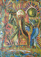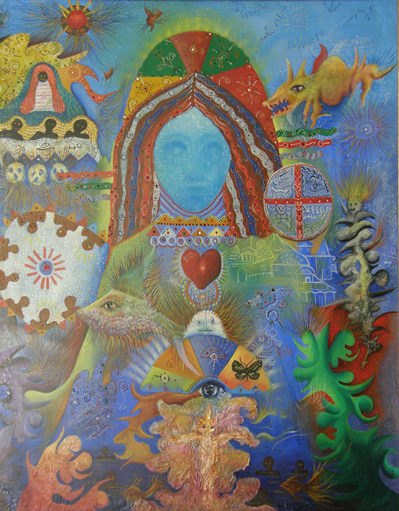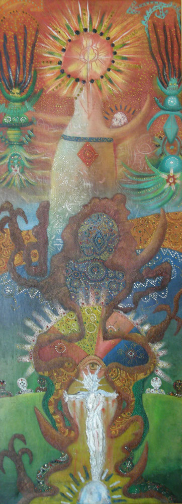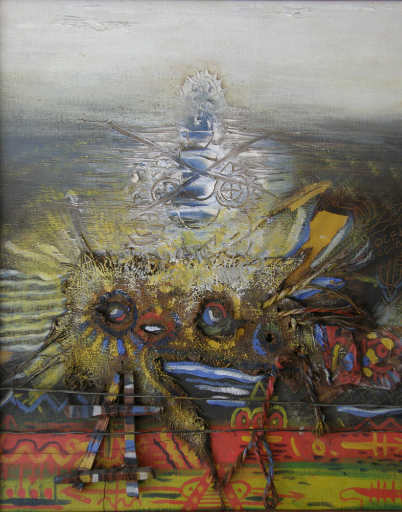 The painting of self-taught artist Miguel de Jesús Ocejo (Santiago de Cuba, 1940-Havana, 2006) reflects the particular social and cultural environment he was born into and where he took his first steps. In his paintings we see the panorama of the popular religions of eastern Cuba, characterized by elements of the cults of the first inhabitants of our is- land, visual references derived from Franco- Haitian ceremonies, and by multiple visual elements of spiritism.